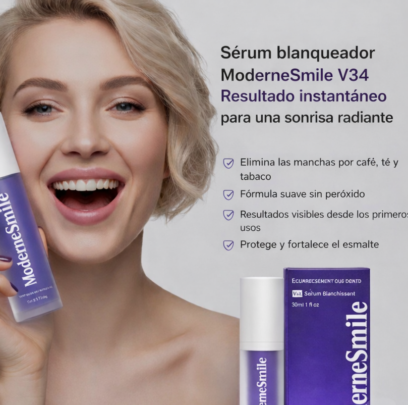 Suero blanqueador ModerneSmile™ V34: resplandor instantáneo para una sonrisa radiante